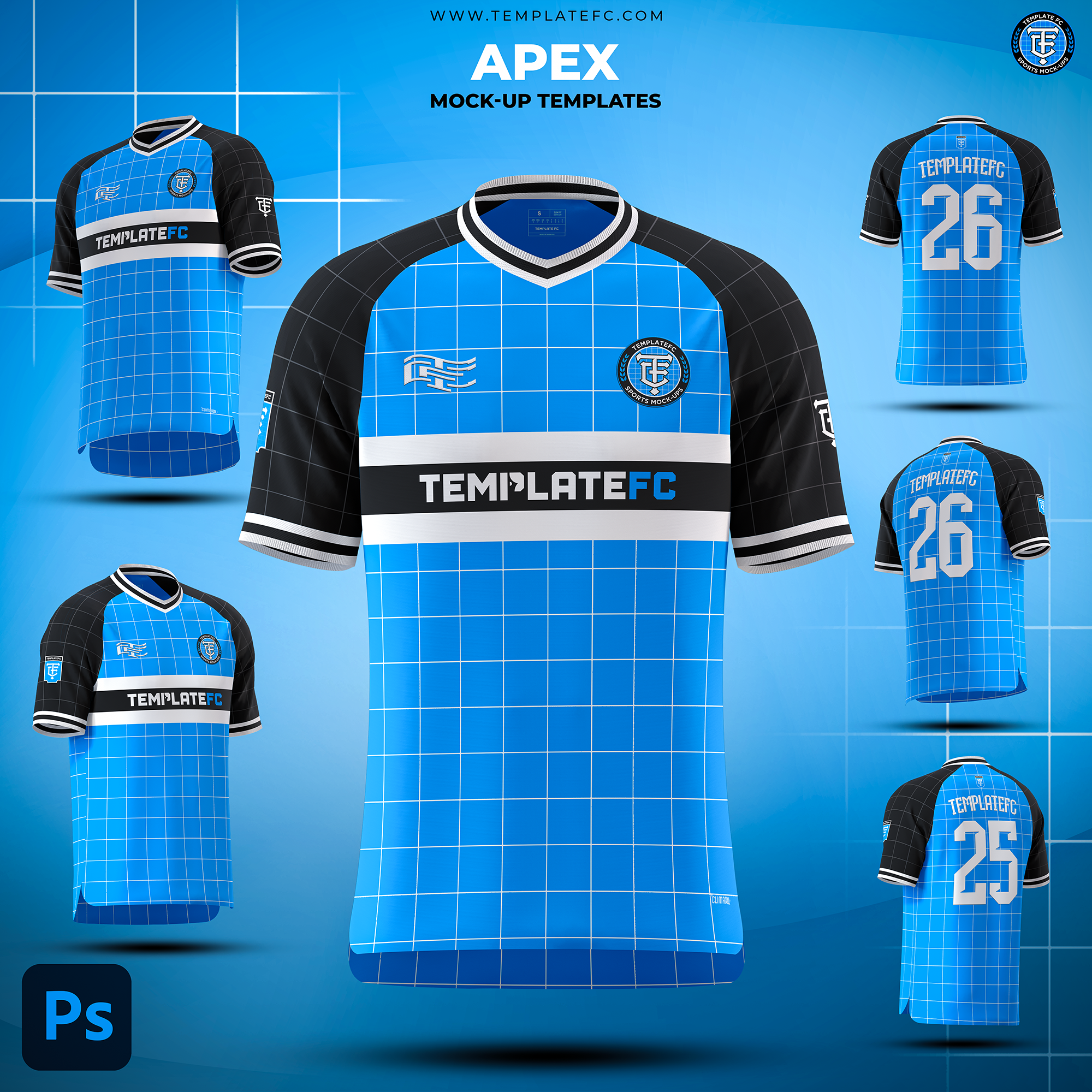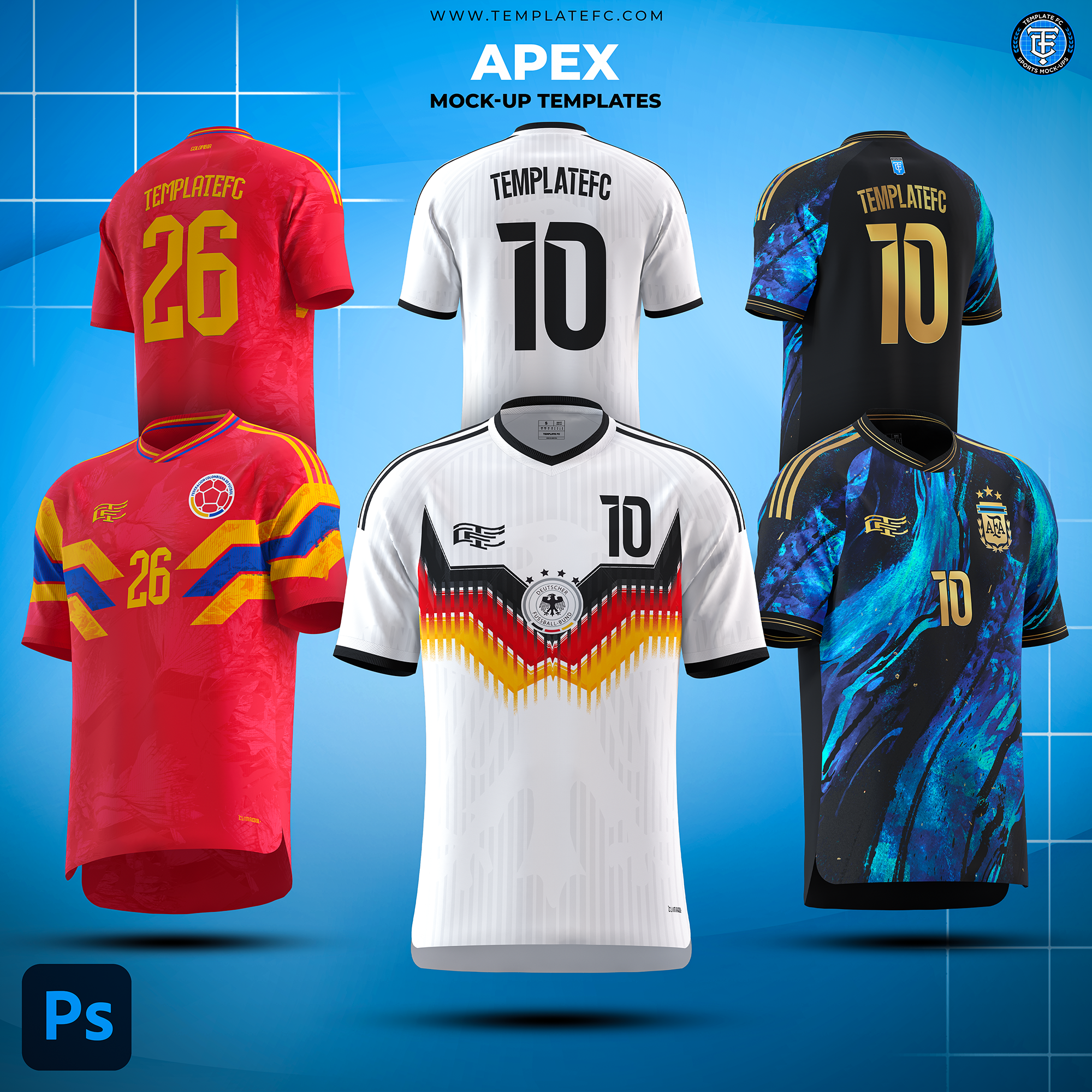 The Apex Soccer Mock-Up Templates are high-quality, 5000 x 5500 px templates designed specifically for Photoshop. These mockup templates are perfect for showcasing your kit designs in the highest resolution possible. Additionally, they offer complete customization, allowing you to tailor every detail to your needs.