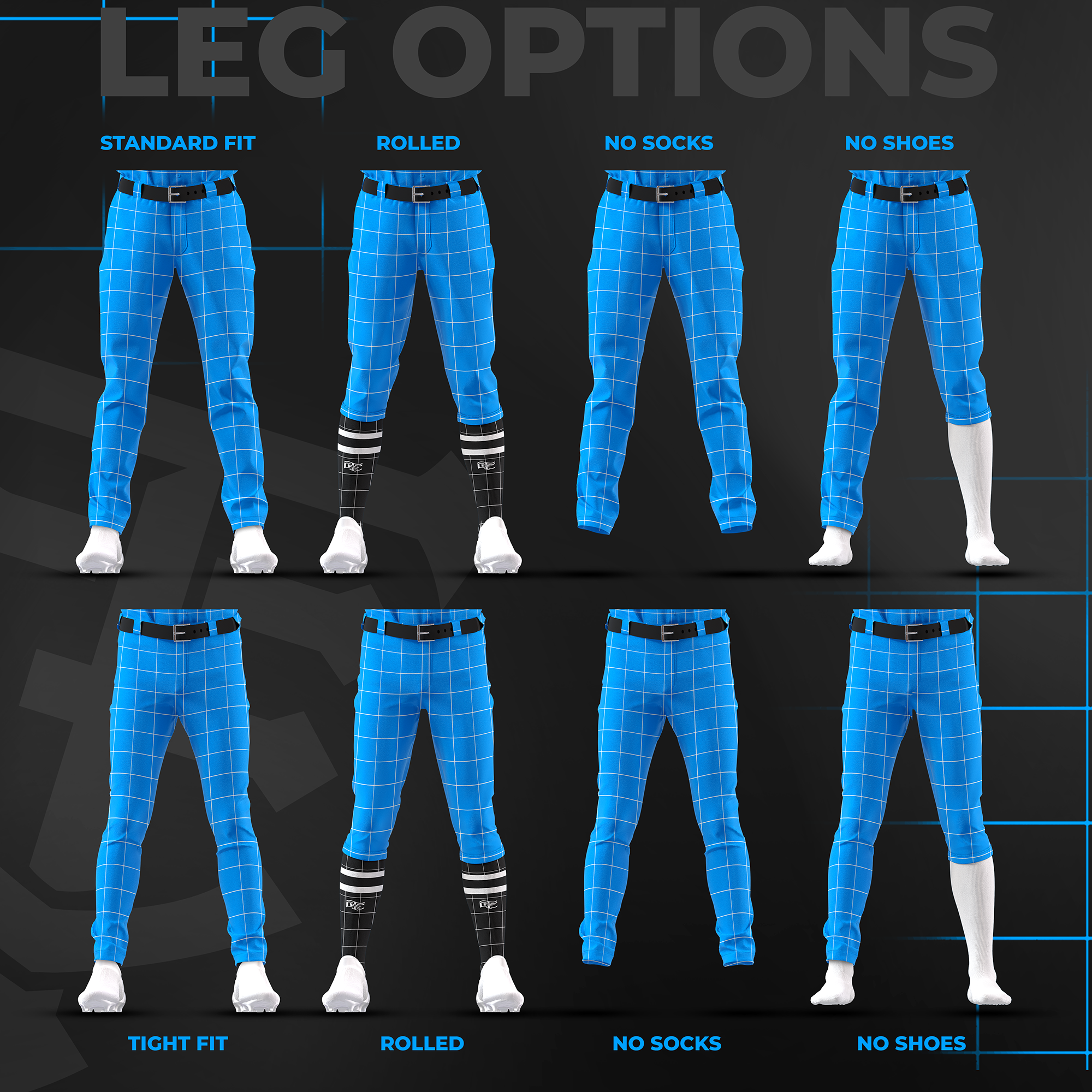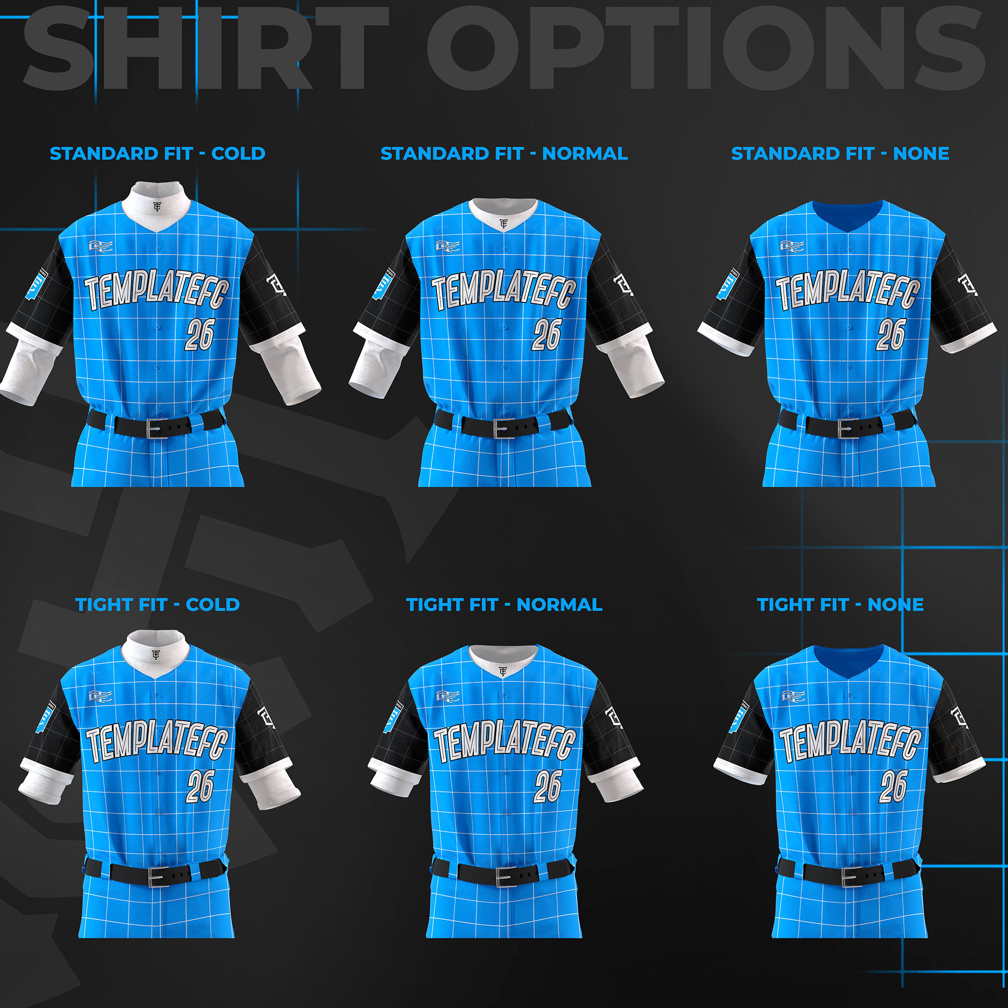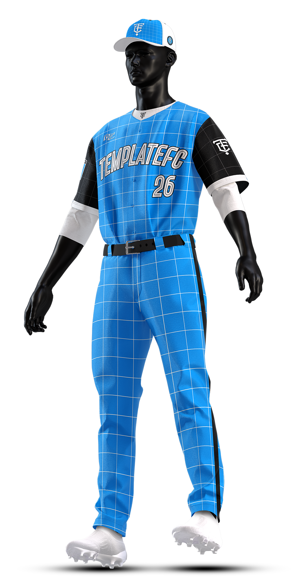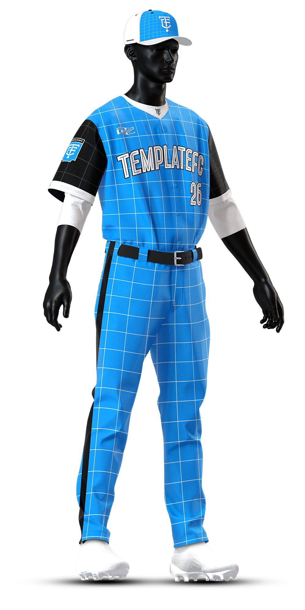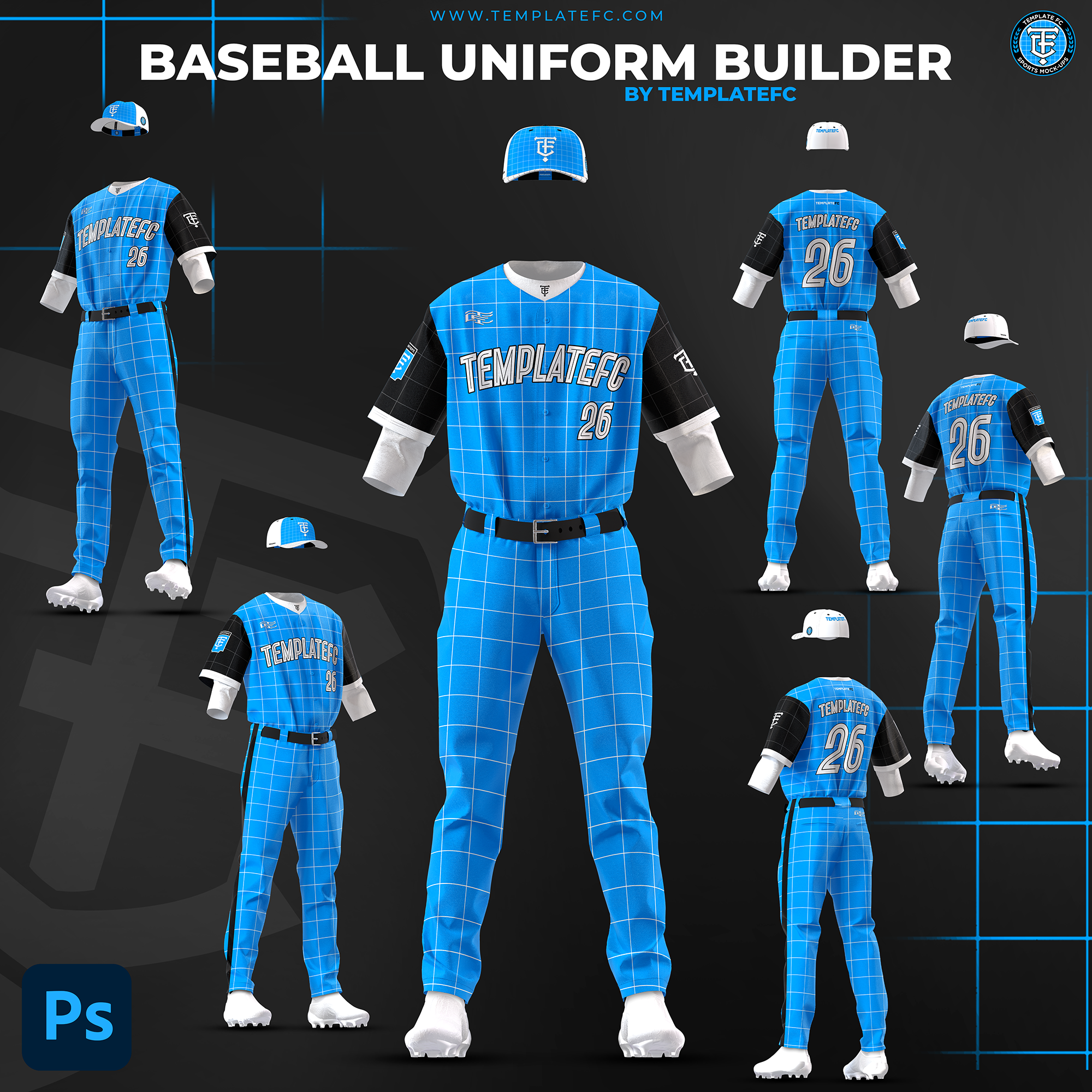 The Baseball Uniform Builder Mock-Up Templates are high-quality, 4000 x 8000 px templates designed specifically for Photoshop. These mockup templates are perfect for showcasing your baseball uniform designs in the highest resolution possible. Additionally, they offer full customization, including 2 fit styles, 3 undershirt options, 2 pant styles, optional socks & shoes, 2 hat styles, and more!