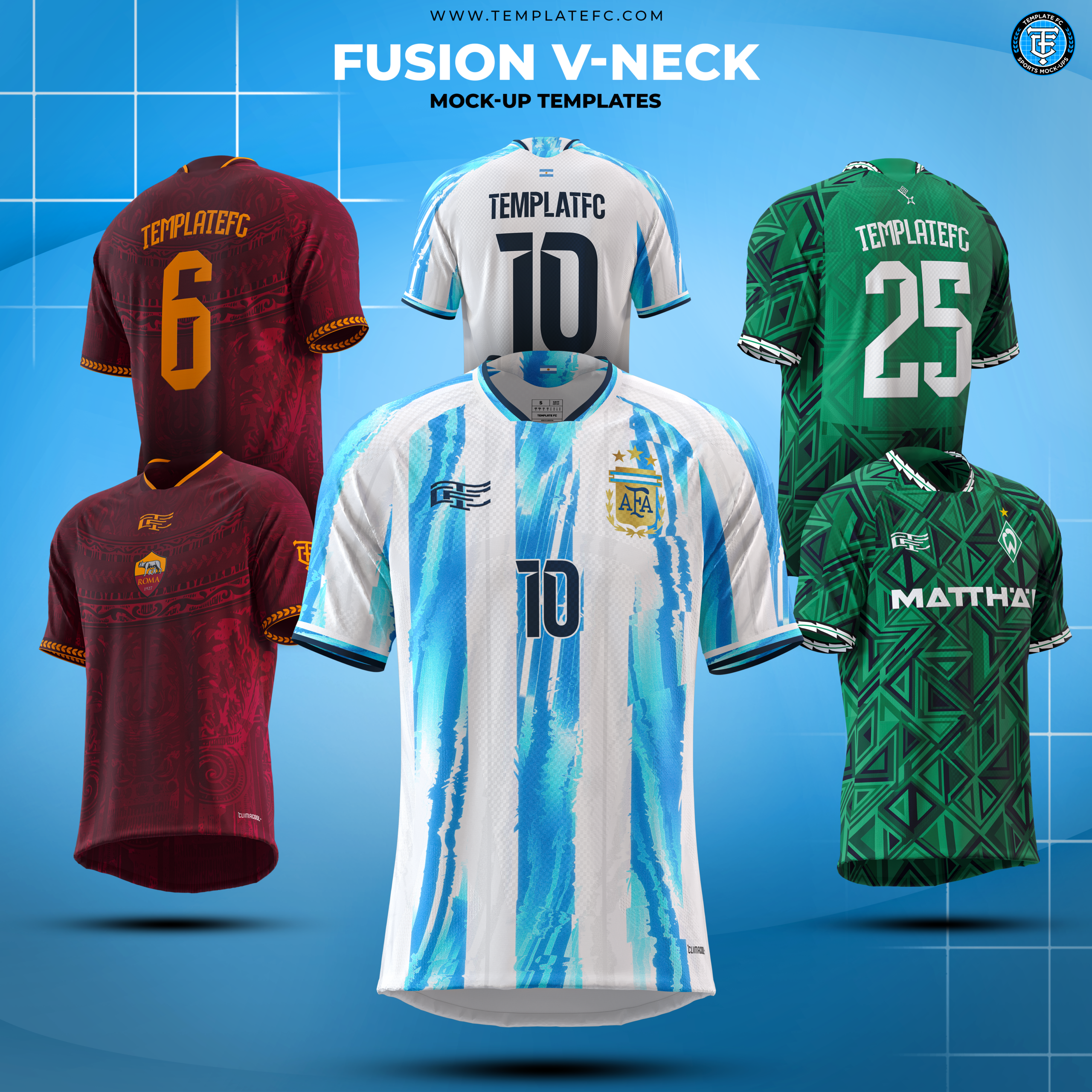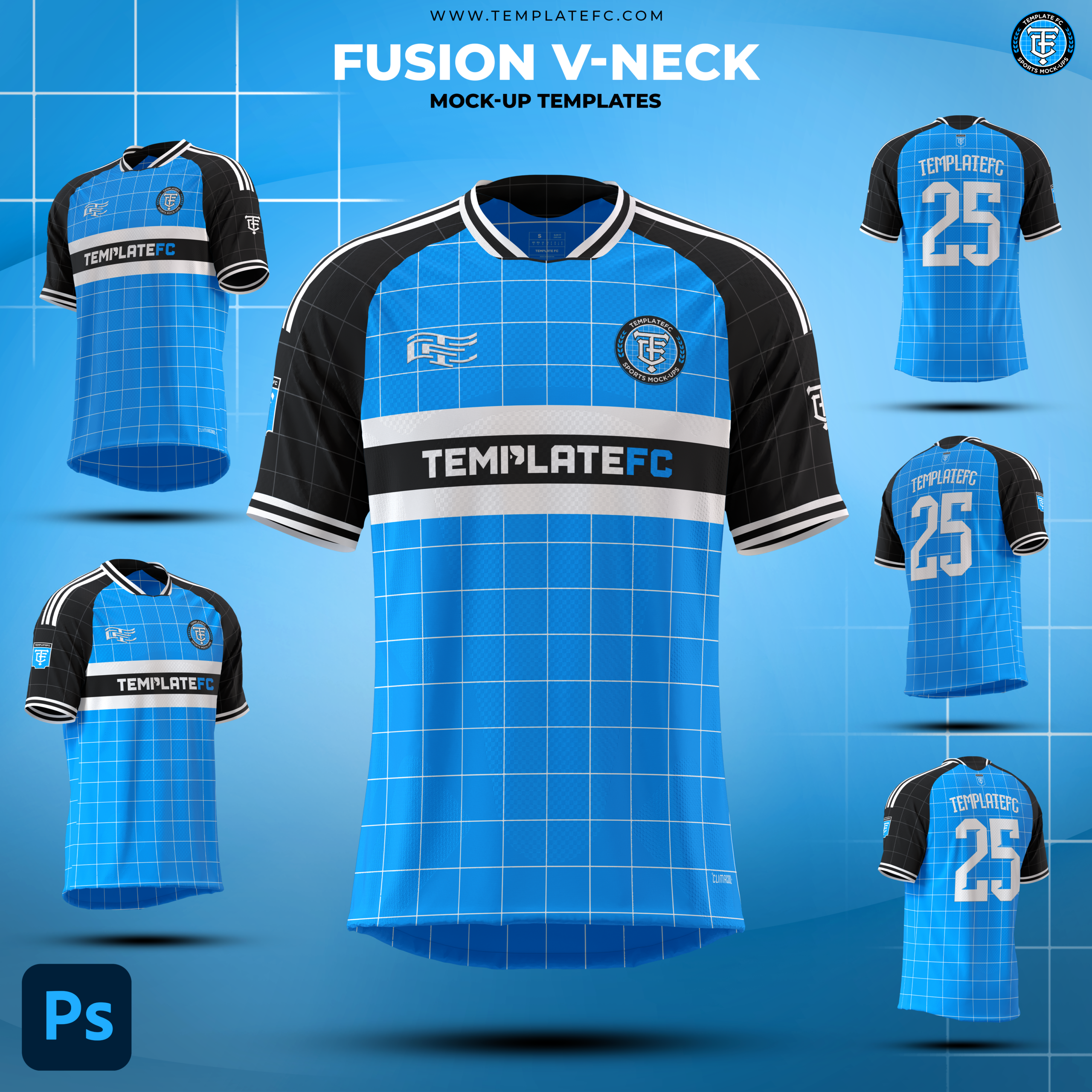 The Fusion V-Neck Soccer Mock-Up Templates are high-quality, 5000 x 5500 px templates designed specifically for Photoshop. These mockup templates are perfect for showcasing your kit designs in the highest resolution possible. Additionally, they offer complete customization, allowing you to tailor every detail to your needs.