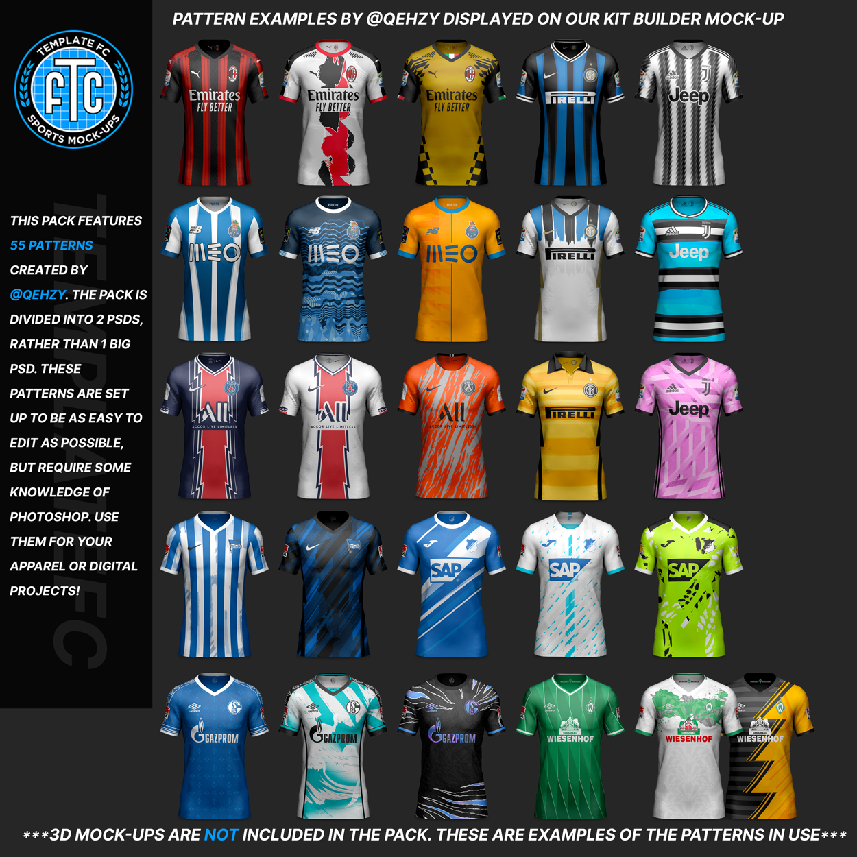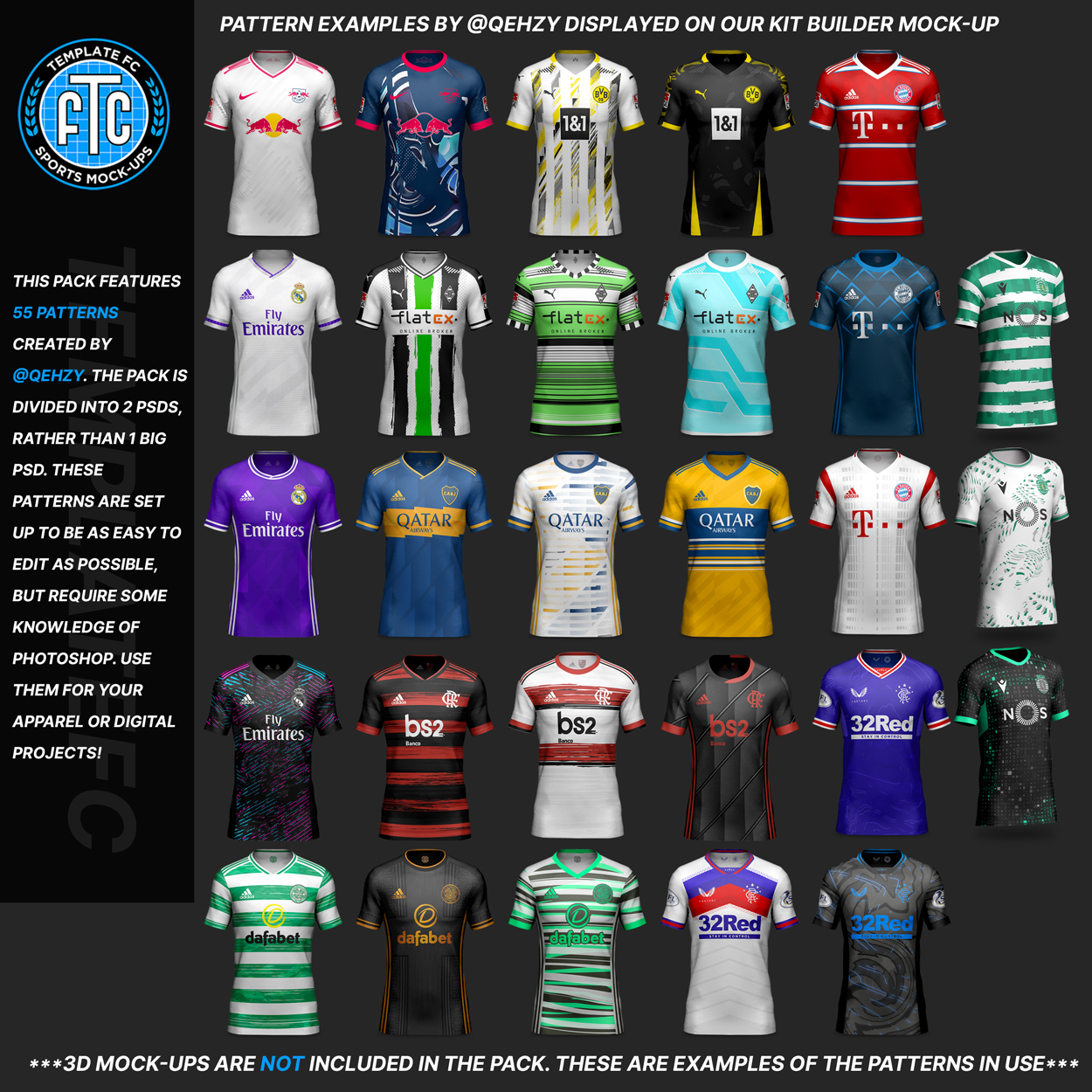 Qehzy’s Kit Patterns Pack 3 includes 55 vibrant, full-color patterns pulled directly from his concept kit designs. As seen on @Qehzy’s Instagram, each pattern brings a unique visual identity and professional polish to your projects.